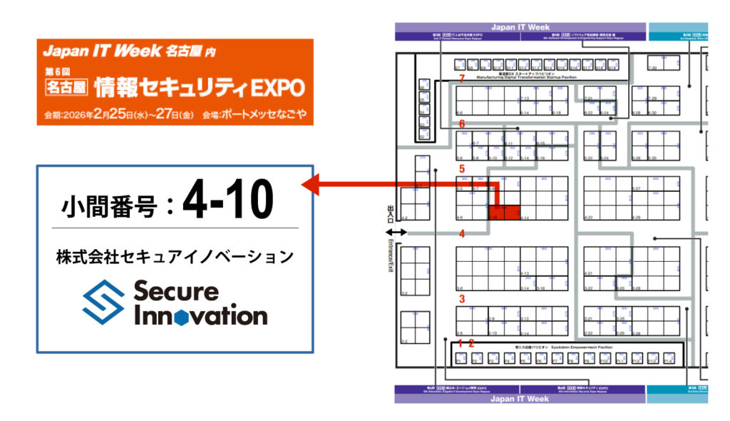 株式会社セキュアイノベーションは、2026年2月25日(水)〜27日(金)にポートメッセなごやで開催される「Japan IT Week 名古屋」 に出展いたします。